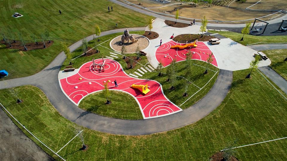 - Over 5 km of walking trails and pathways connecting parks, wetlands, and gathering spaces